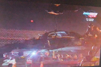 (クレーンで持ち上げられてるところ・・・暗くてよく分かんないけど。